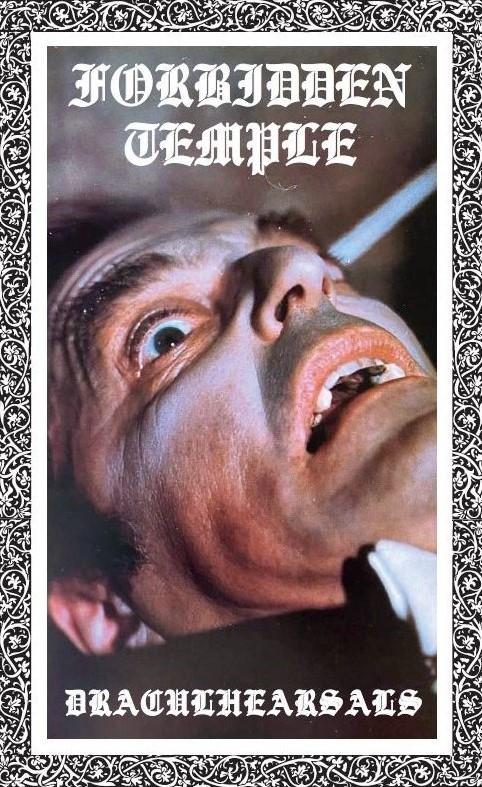As a whole, Forbidden Temple is no stranger to releasing tapes, either independently or through their long-standing alliance with Medieval Prophecy Records and Gramschap. The latter is also responsible for ‘Draculhearsals’, which was released last fall. A season that, with its increasingly shorter days, piercing rain showers, and a range of enchanting warm colors, lends itself perfectly to old gothic horror films. It is perhaps no coincidence that the cover of this tape features a portrait of Dracula, played here by Howard Venon in ‘Dracula, Prisoner Of Frankenstein’ (1972). The music is a perfect soundtrack for both the colder and bleaker weather and a real old-fashioned horror film.
