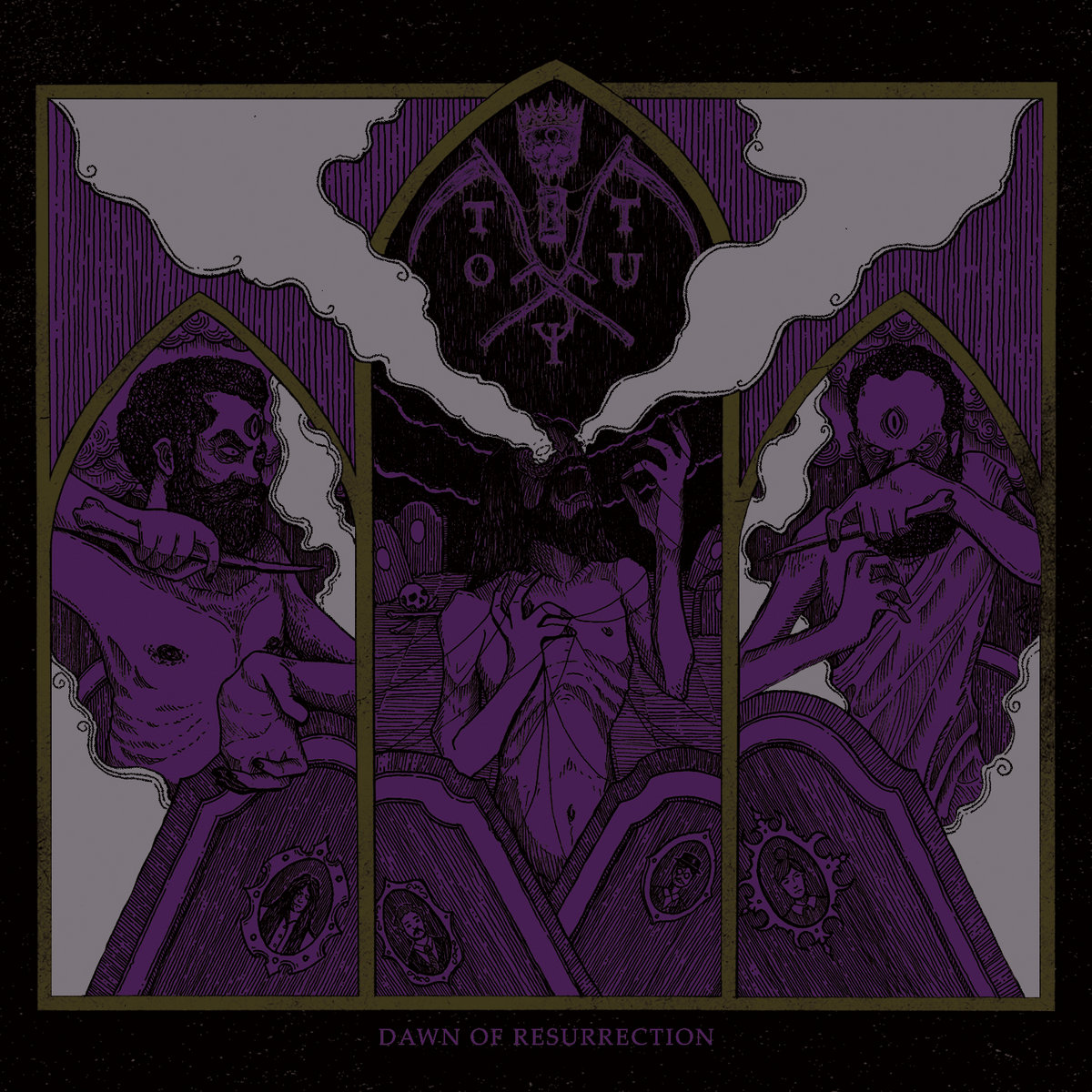That is once again the first thought that crosses my mind when I listen to ‘Dawn Of Resurrection’. The occult Black Metal with strong evil Death Metal connotations, backed by humming, ghostly keyboards, combines the occult vibe of bands such as Mystifier, Samael and Varathron with the somewhat heavier edge of a band like Imprecation. In that sense, “Dawn Of Resurrection” is not much different from the previous work under this name, but the main distinction lies in a slightly more effective production that gives the music a bit more urgency. It goes without saying that I am not averse to a raw edge to music, quite the contrary, I would say, but the extent to which it is applied on this EP does more justice to the songs and especially the atmosphere. The keyboards in the background are now more subtle and the (strong) riffs are also slightly more muted, as a result of which more attention is paid to the hissing and sibilant vocals, which at times are reminiscent of Beherit or Void Meditation Cult. This kind of music relies heavily on atmosphere and experience, and in that respect, this is undoubtedly Trance Of The Undead’s best work to date.